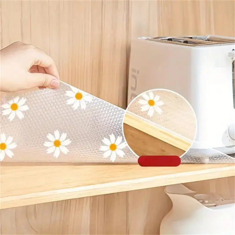 1 Roll Daisy Shelf Liner For Kitchen Cabinets EVA Waterproof Fridge Pad Cupboard Mat Easy Placemats Non-Adhesive Drawer Liner