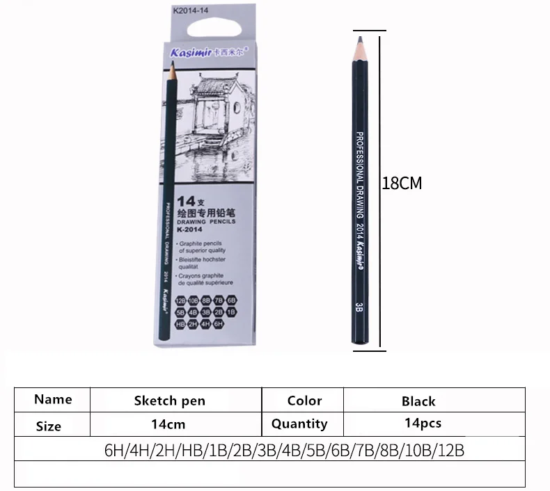 14Pcs/Set Drawing Sketch Pencils Set Wooden Professional Art Supplies HB 2B 6H 4H 2H 3B 4B 5B 6B 10B 12B 1B Painting Stationery